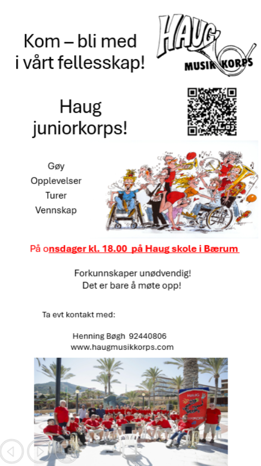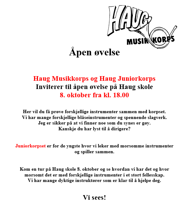 Haug Musikkorps og Haug Juniorkorps inviterer til åpen øvelse på Haug skole